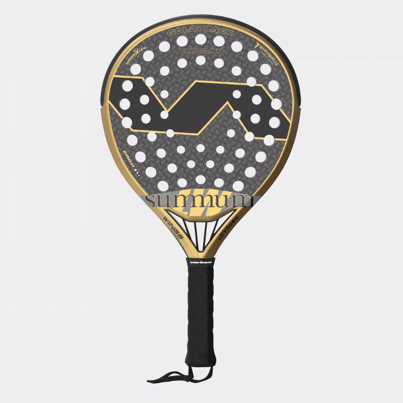 Varlion LW Summum Carbon GoldBlack es una pala redonda destinada a jugadores de nivel intermedio que quieran dar un salto de calidad en su juego. En su diseño predomina el color negro, dando un toque sobrio y elegante que contrasta con el color llamativo de su goma.